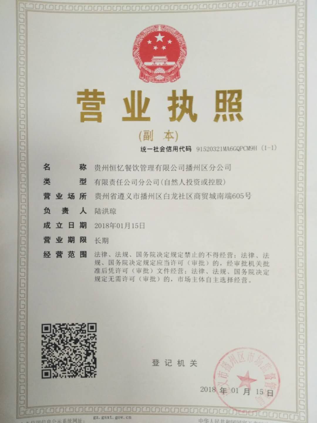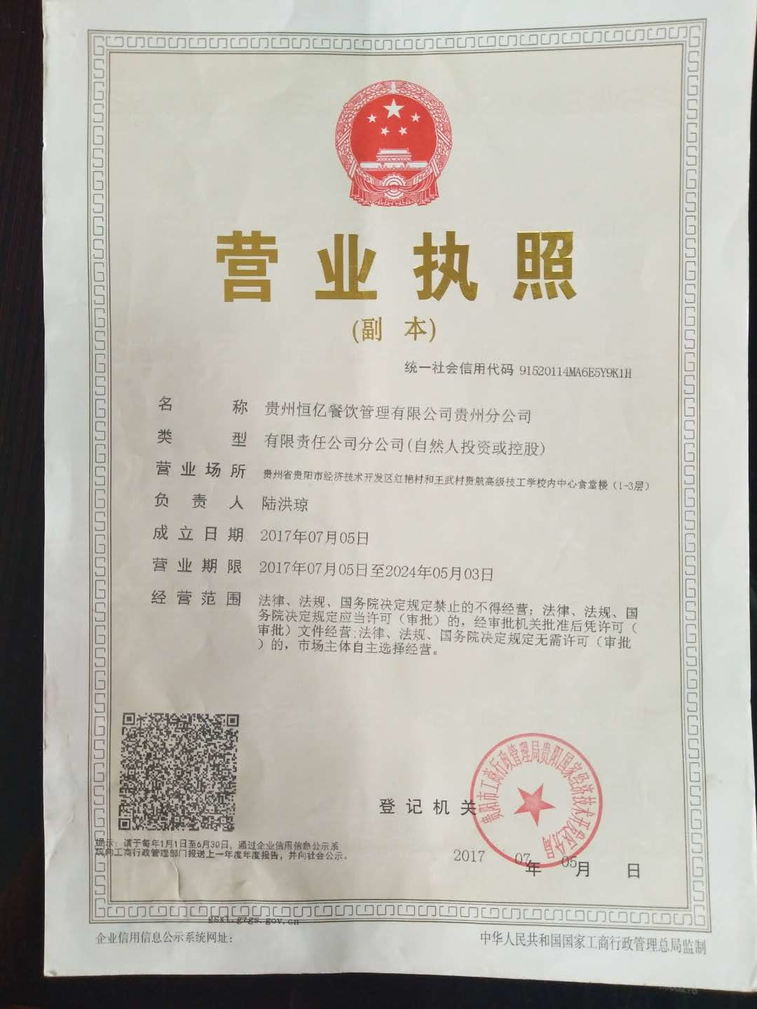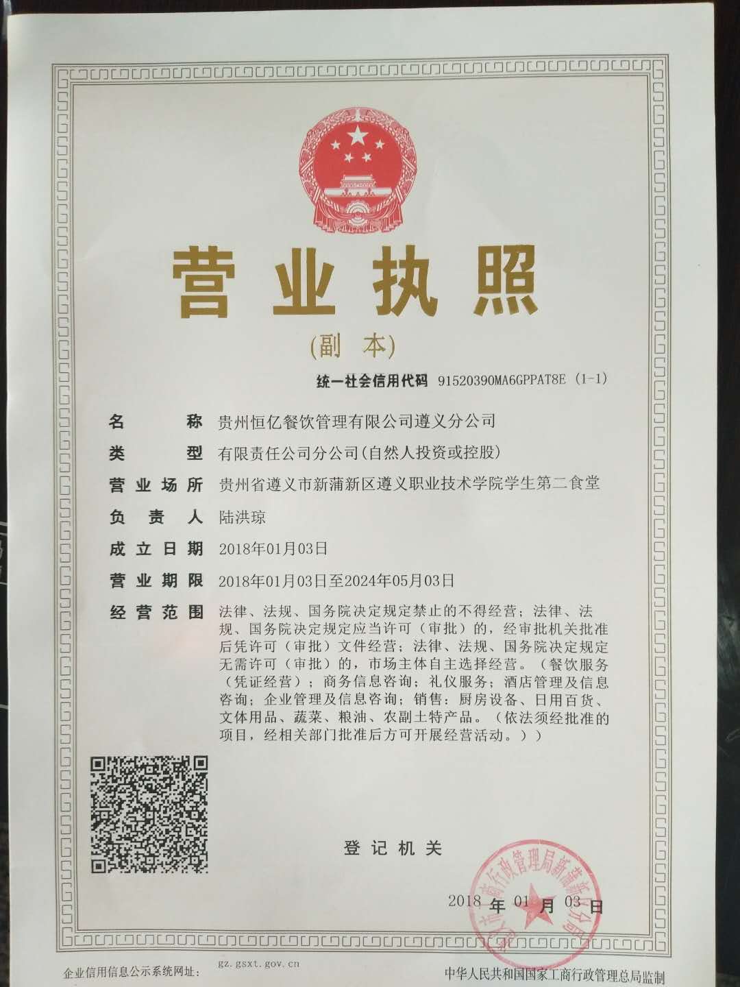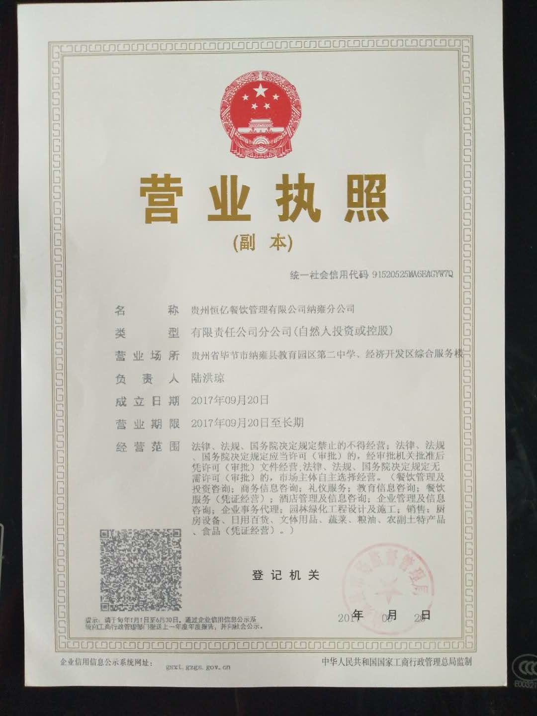 公司名称:贵州恒亿餐饮管理有限公司